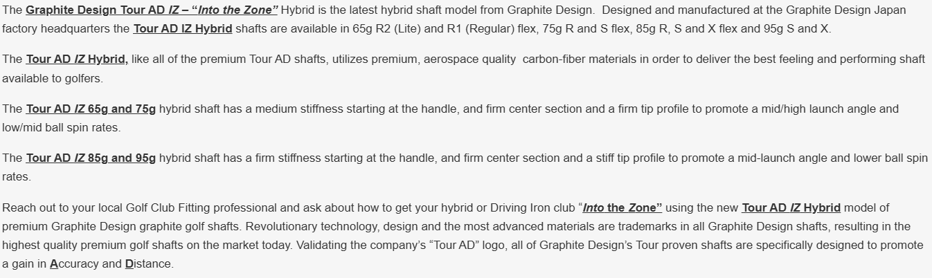 Graphite Design Graphite Design Tour AD IZ Graphite Shaft w/ Adapter and Grip was: Was: $379.00 Choose Options