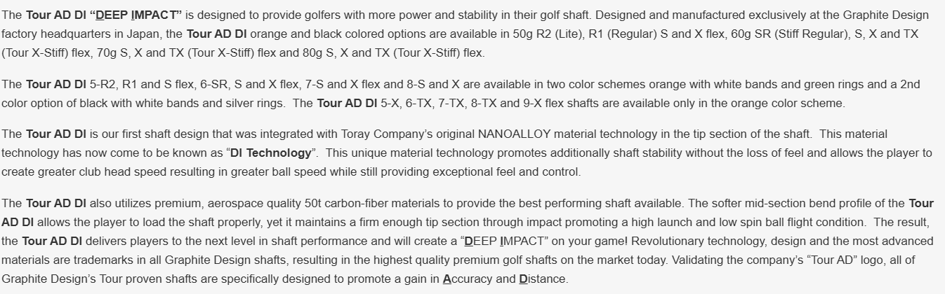 Graphite Design Tour AD DI Black Graphite Shaft w/ Adapter and Grip