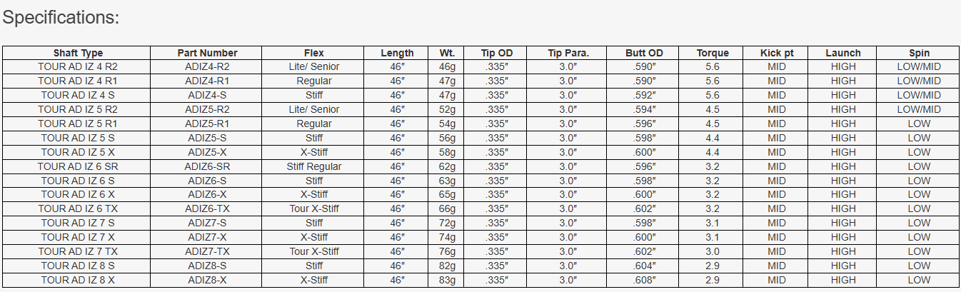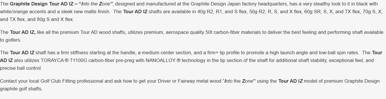 Graphite Design Tour AD IZ Graphite Shaft w/ Adapter and Grip
