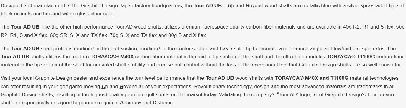 Graphite Design Tour AD UB Graphite Shaft w/ Adapter and Grip