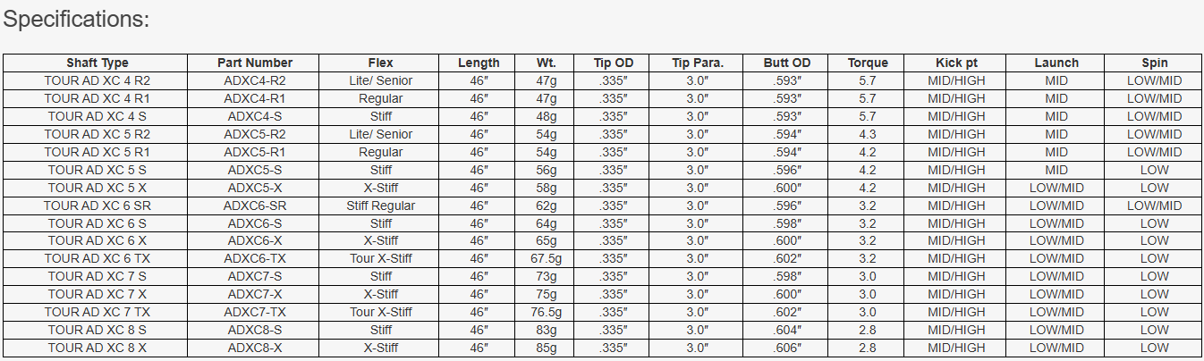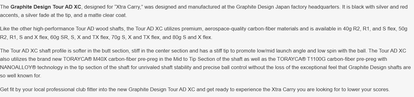 Graphite Design Tour AD XC Graphite Shaft w/ Adapter and Grip