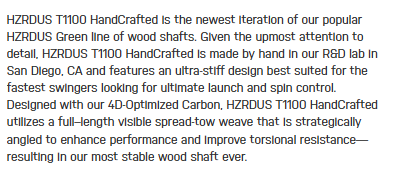 HZRDUS T1100 HandCrafted Graphite Shaft w/ Adapter and Grip