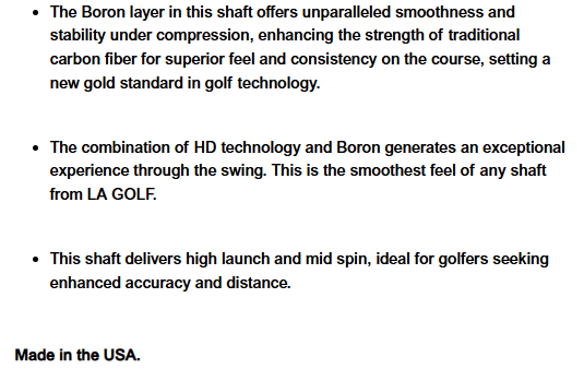 LA GOLF Gold Series Graphite Shaft w/ Adapter and Grip