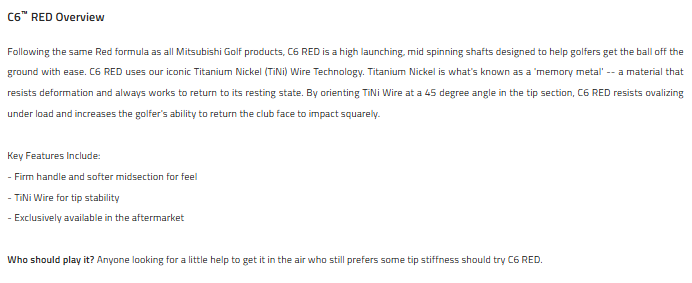 Mitsubishi C6 Red Graphite Shaft w/ Adapter and Grip