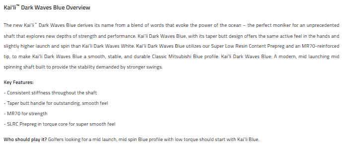 Mitsubishi Kai'li Dark Wave Blue Graphite Shaft w/ Adapter and Grip