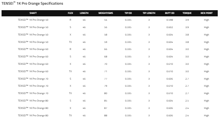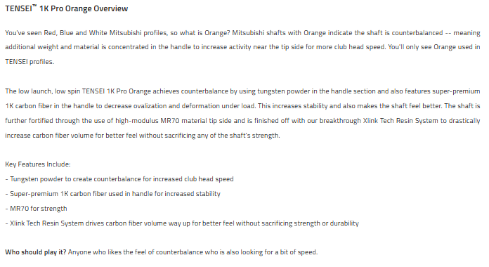 Mitsubishi TENSEI 1K Pro Orange Graphite Shaft w/ Adapter and Grip