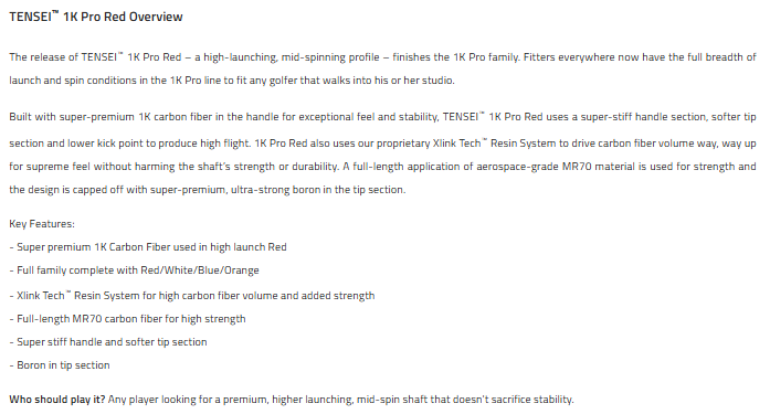 Mitsubishi TENSEI 1K Pro Red Graphite Shaft w/ Adapter and Grip