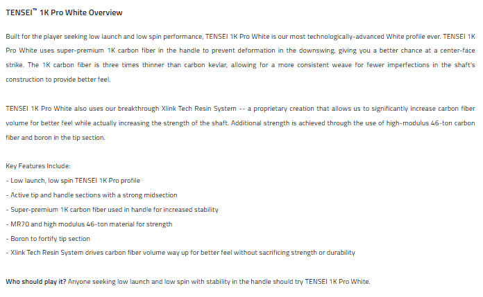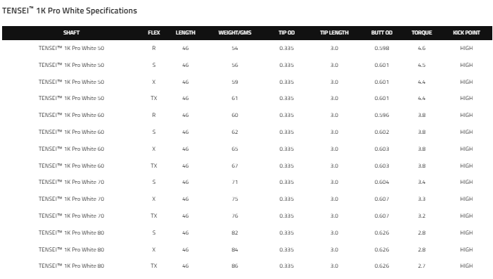 Mitsubishi TENSEI 1K Pro White Graphite Shaft w/ Adapter and Grip
