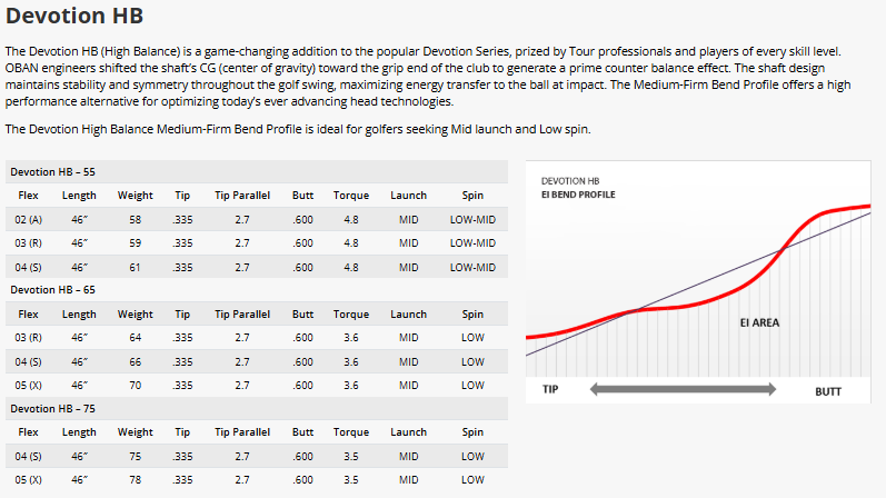 Oban Devotion HB Graphite Shaft w/ Adapter and Grip