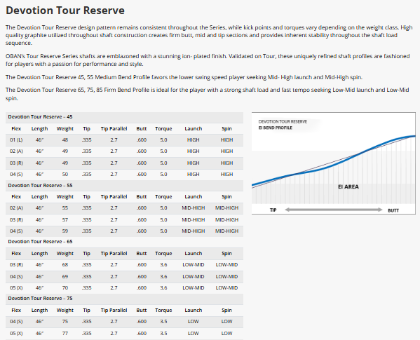 Oban Devotion Tour Reserve Graphite Shaft w/ Adapter and Grip