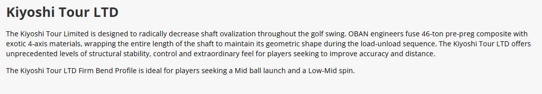 Oban Kiyoshi Tour LTD Graphite Shaft w/ Adapter and Grip