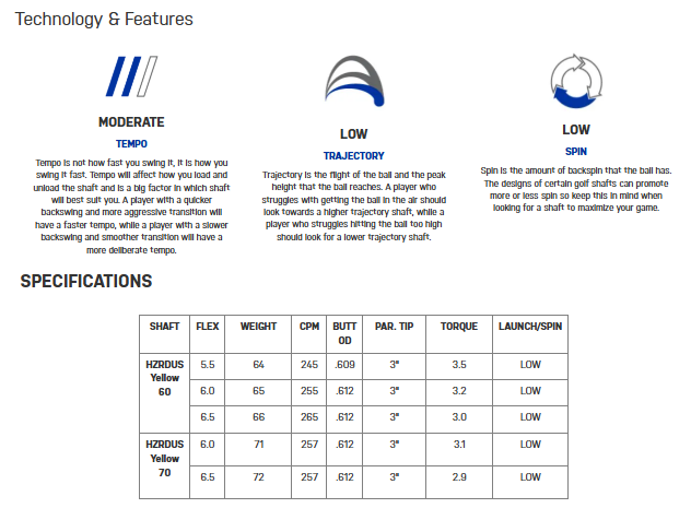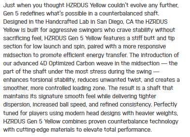 Project X HZRDUS Gen 5 Yellow Hand Crafted Graphite Shaft w/ Adapter and Grip