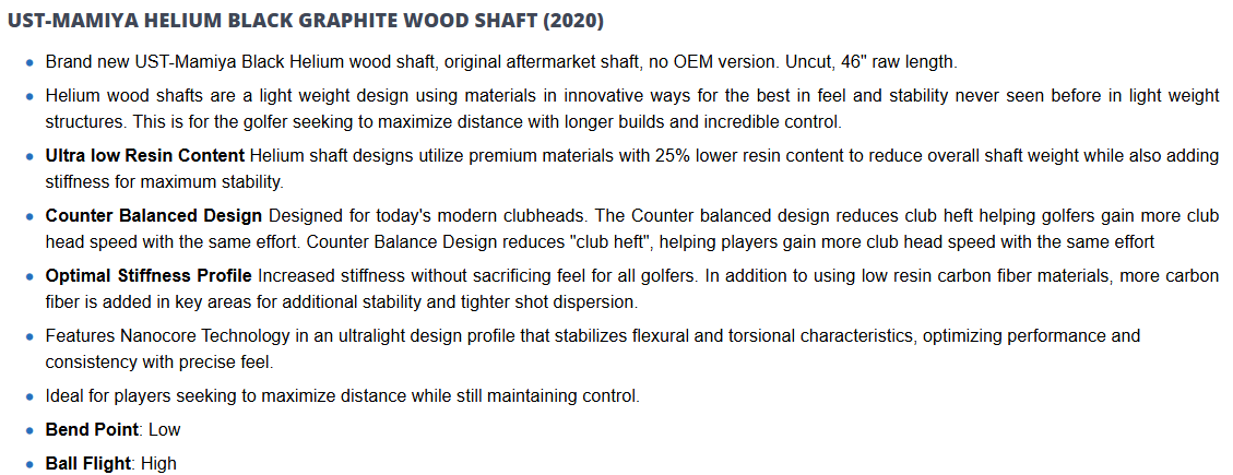 UST Helium Black Graphite Shaft w/ Adapter and Grip