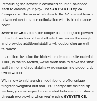 VA Composites Synystr CB Graphite Shaft w/ Adapter and Grip